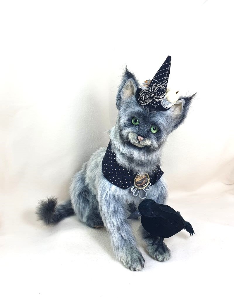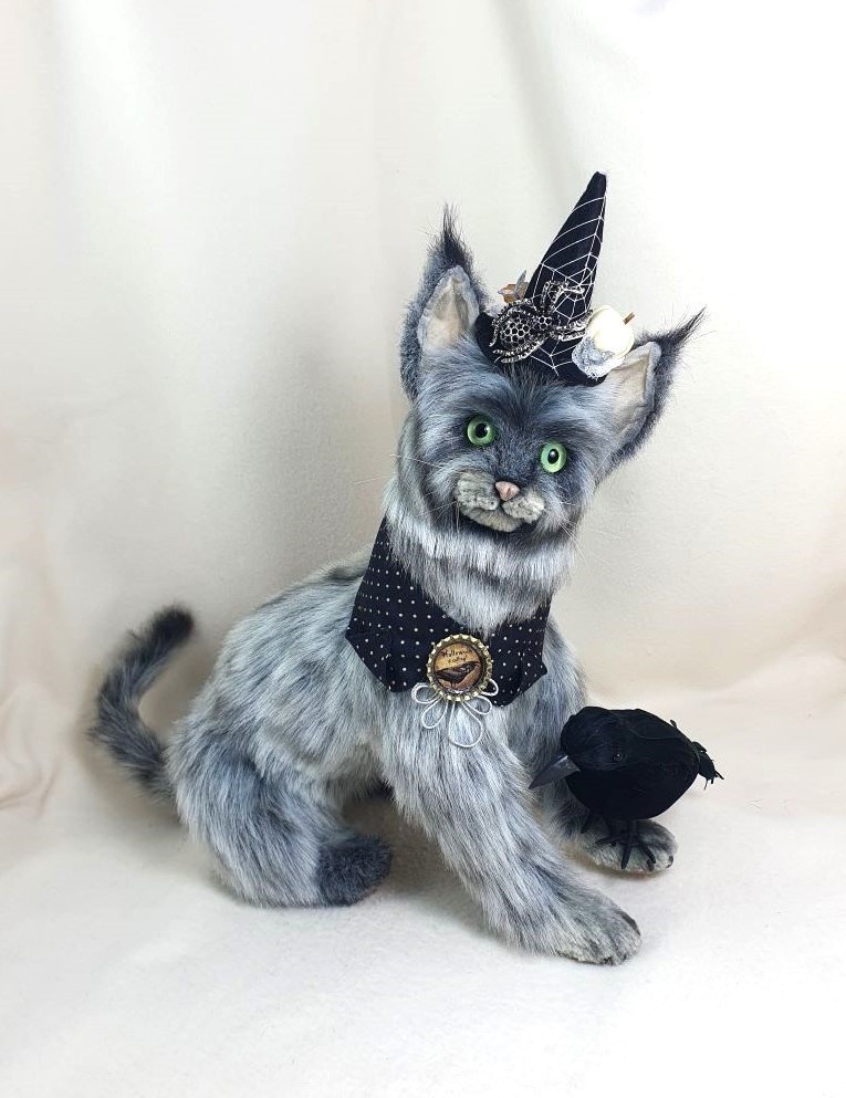 The wild cat is sewn from 37 pieces of plush and 37 molded pieces (nose, paw pads, claws).