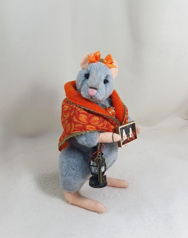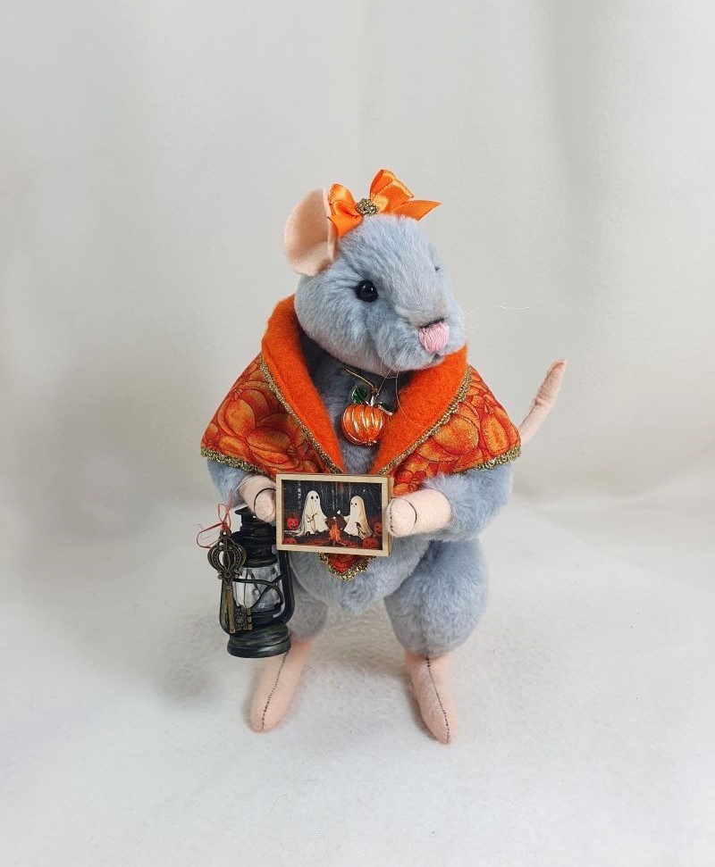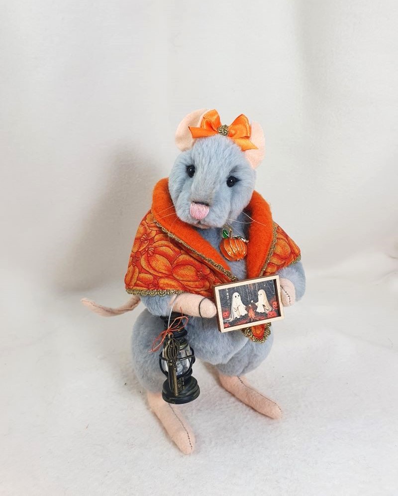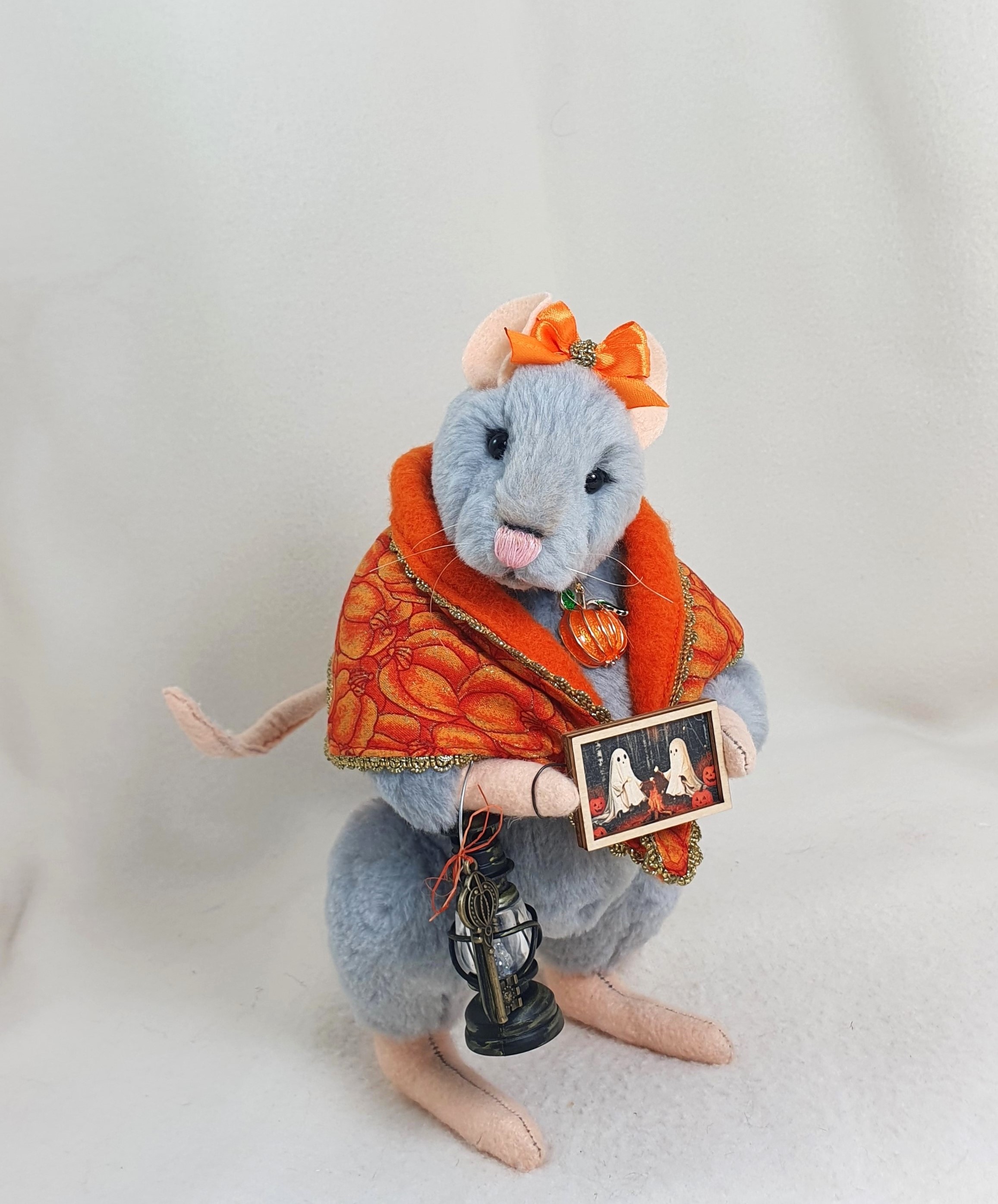 Decorations: 100% cotton scarf - 100% wool, glowing lantern,picture with ghosts, pumpkin pendant, bow.