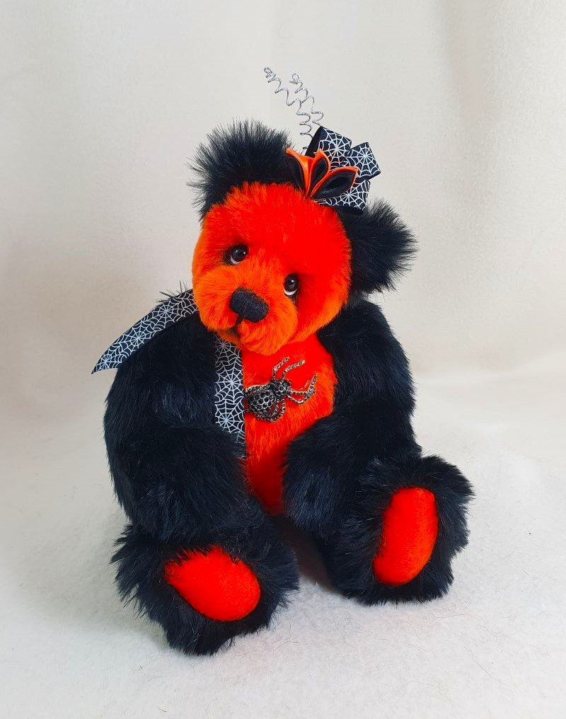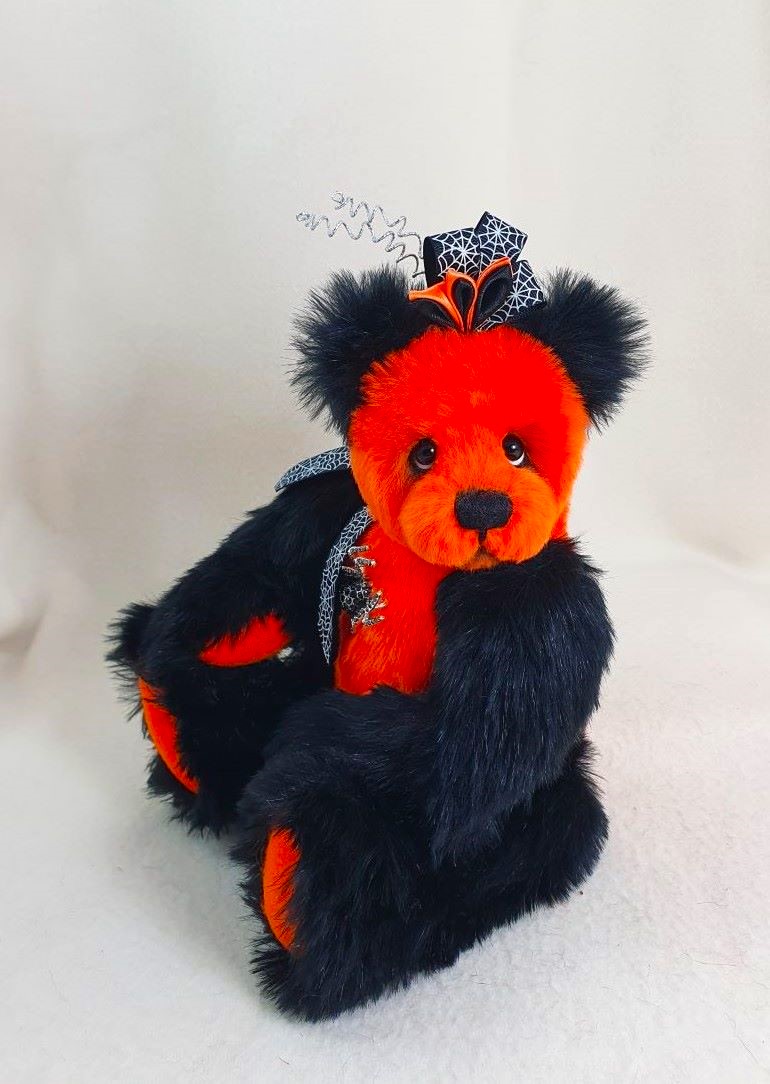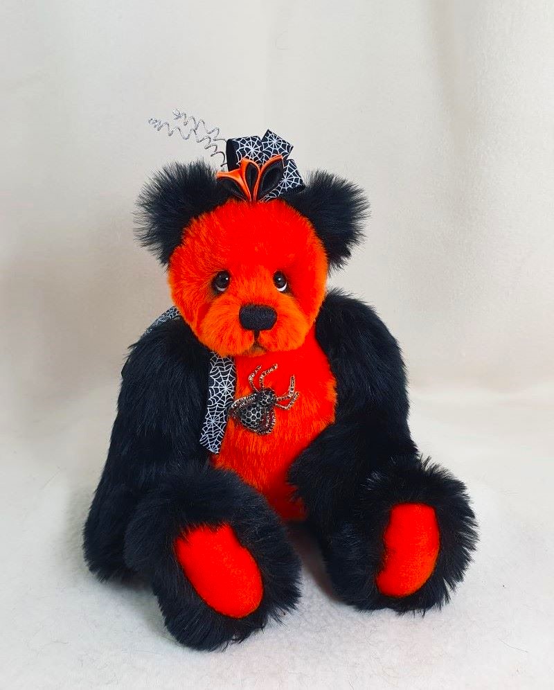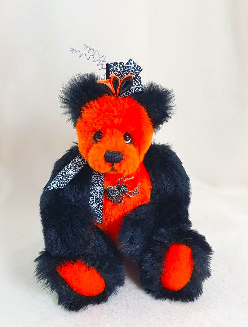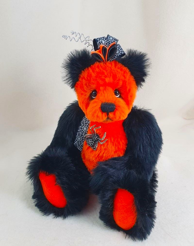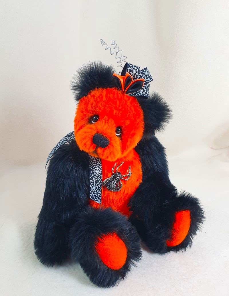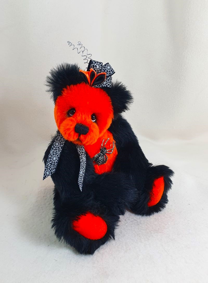Decoration: spider brooch, ribbon with spider web, kanzashi hat